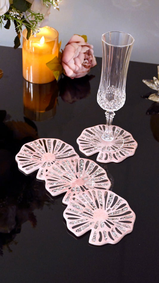 Pink Bloom: Floral Coasters with Coaster Holder (Set of 4)