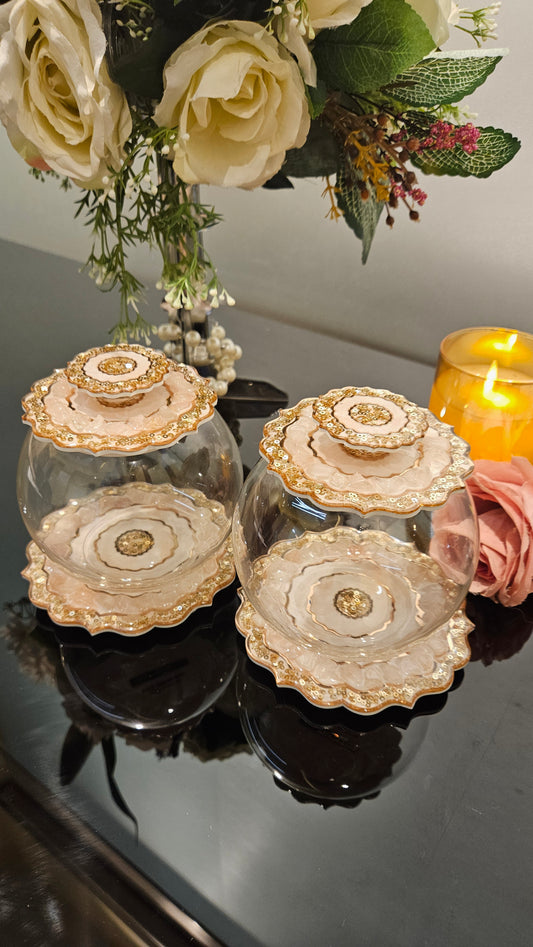 Rose Gold Rose Stones: Jar With Lid (Set Of 1)