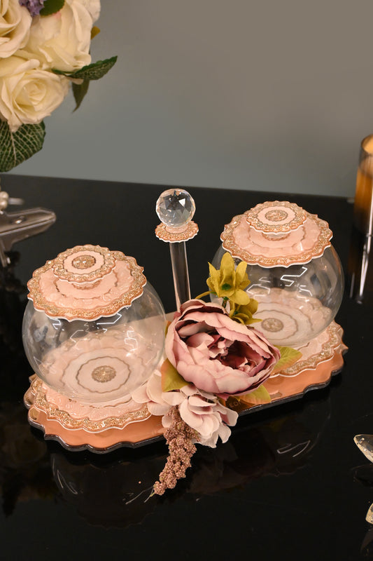 Rose Gold Rose Stones: 2-layer Flower Bowl Platter