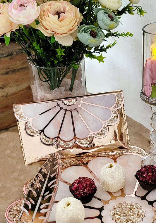 Rose Gold Rose Stones: Large Round Serving Lid with Tray