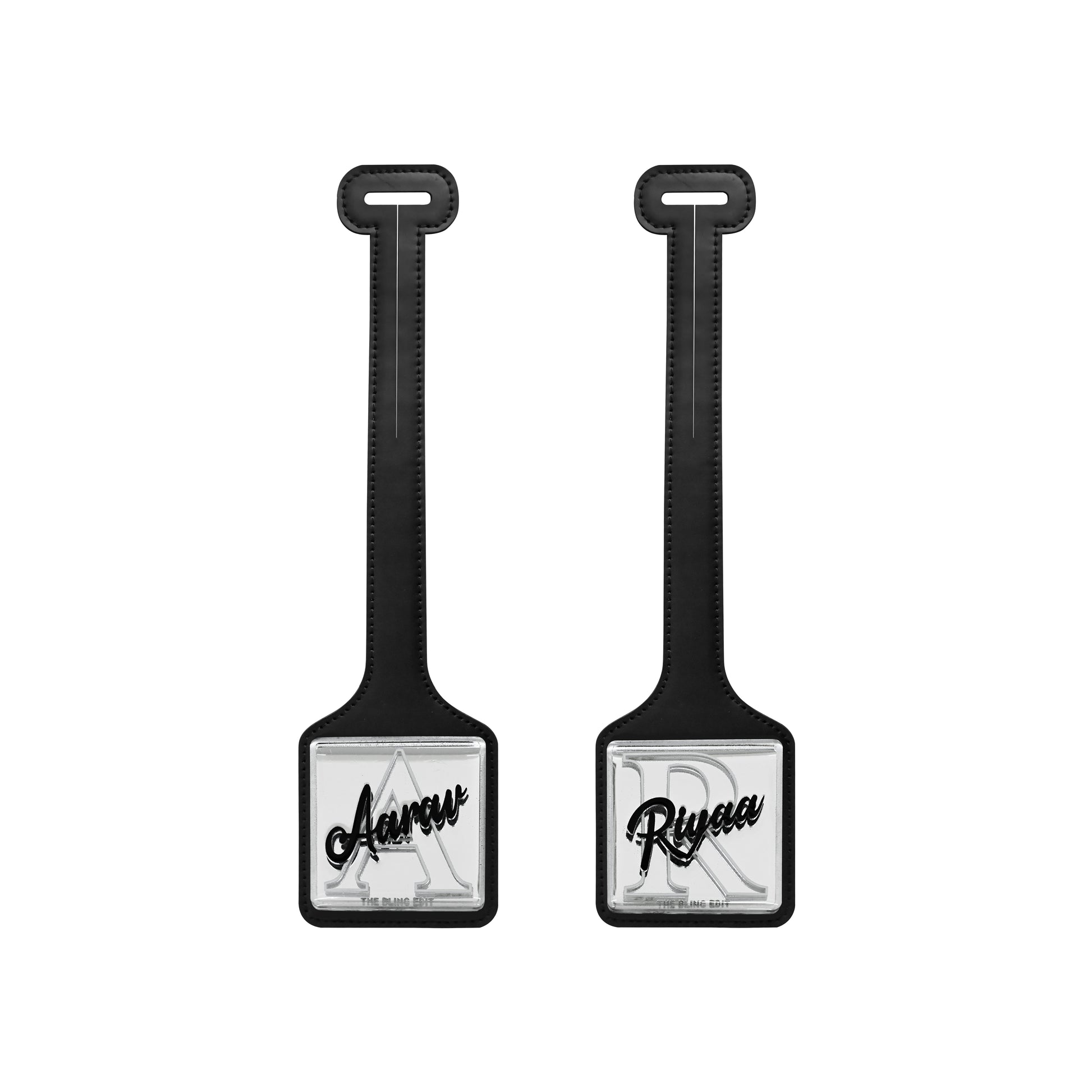 Silver Black PU Luggage Tag (Set of 2)